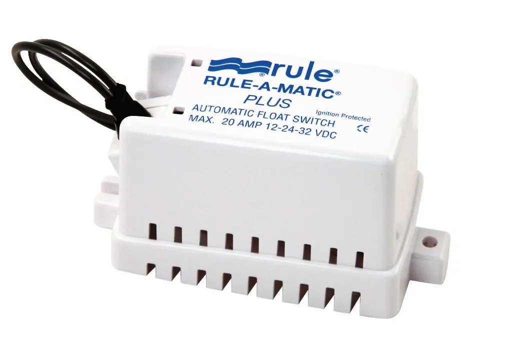 Tyylikäs ja kestävä Rule-A-Matic Plus -pilssipumpun kellukekytkin on varustettu vahvalla, täysin integroidulla ja iskunkestävällä suojakannella, joka suojaa roskilta ja jumittumiselta. Siinä on 14 AWG -kokoluokan kulutusta kestävä, merikäyttöön soveltuva johto sekä sisäänrakennettu testitoiminto. Laite on suunniteltu enintään 20 ampeeria kuluttaville pumpuille, ja Rule-A-Matic Plus -mallilla on 2 vuoden takuu.