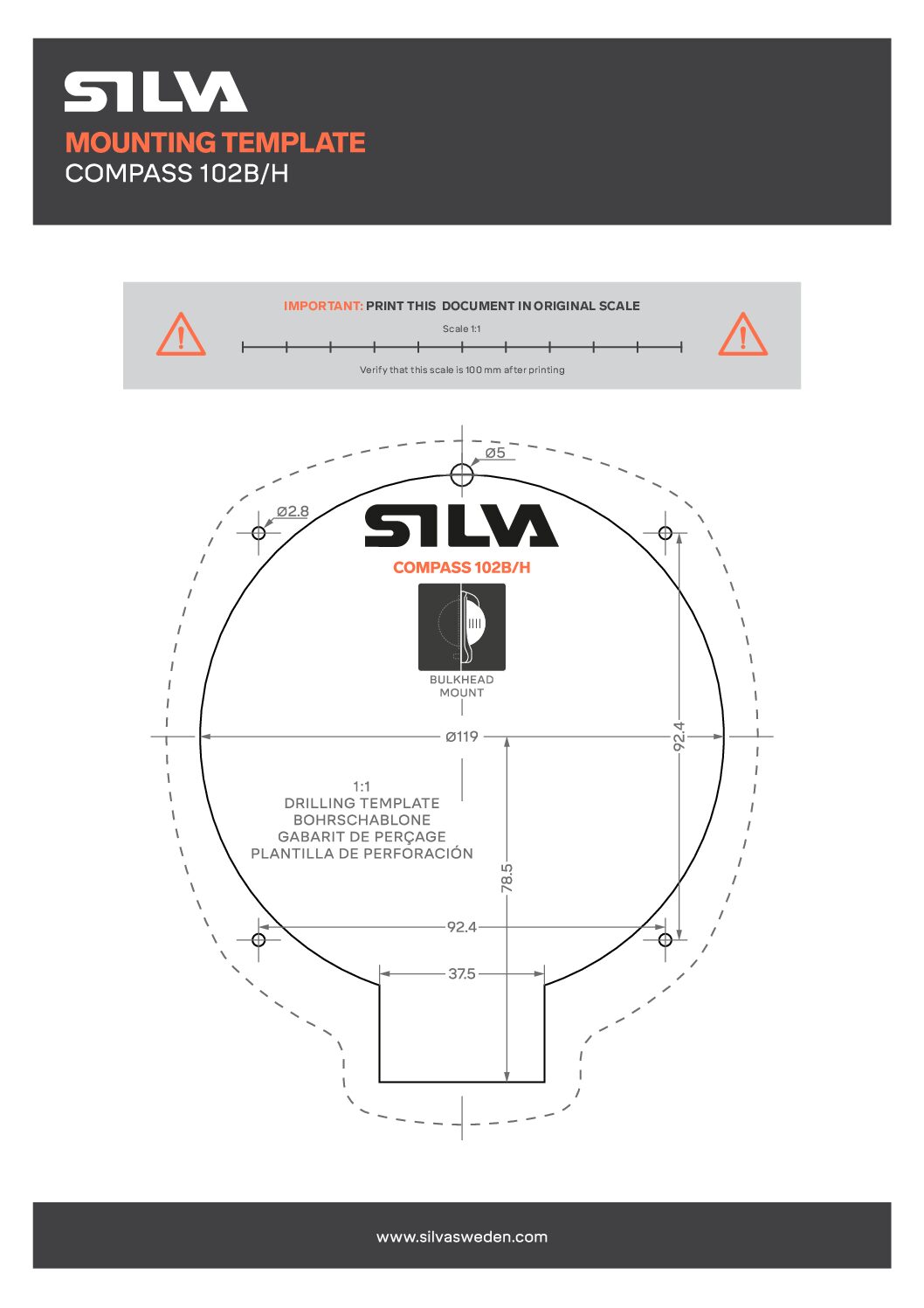 Kompassi sallii jopa 45° kallistuksen ja rajoittamattoman kallistuksen keulasta perään. 102B/H:ssa on 100 mm:n ruusu, kardaaninen teline ja suoraan luettava asteikko pystysuoralla reunalla.