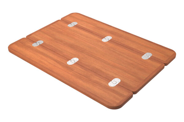 Tämä massiivipuinen pöytälevy on valmistettu laadukkaasta tiikkiviilusta, joka antaa sille ainutlaatuisen ja luonnollisen ulkonäön. Tiikkiviilu on erittäin kestävä materiaali, joka sopii täydellisesti pöytälevyihin, sillä se kestää hyvin kulutusta ja naarmuuntumista. Pöytälevy auki 60 x 90 cm. Pöytälevy kiinni 31 x 90 cm.