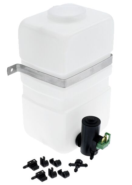 12 V huuhtelupumpulla varustettu 2,5 litran vesisäiliö. Sarjaan sisältyy 2,5 l säilö kiinnitysosineen, pumppu, letku takaiskuventtiilillä sekä T-kappale. Huuhtelusuutinsarjat on ostettava erikseen.